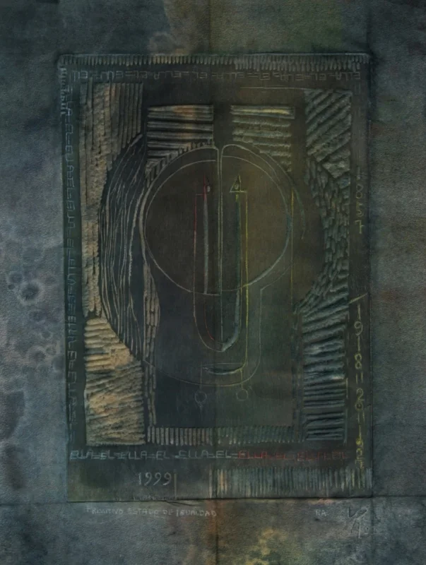 This unpublished woodcut is one of the few works by Yolanda del Riego (YR) that depicts a human subject. Created in 1999 for International Women's Day, it expresses her personal interpretation of the state of gender equality at that time.