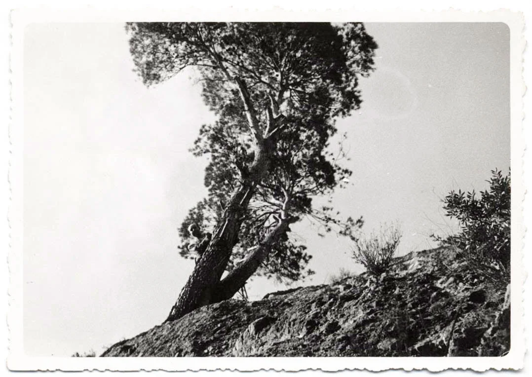 The works in this series are based on an old black & white photograph of a tree clinging to the edge of a cliff, taken by artist’s late husband.